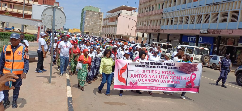 Metodistas Unidos marcha nas arterias da cidade de Malanje falando sobre a preenção do câncer da mama.